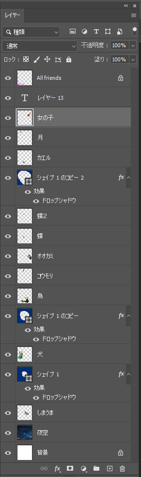 曲線ペンツール、ドロップシャドウ、画像切り取り