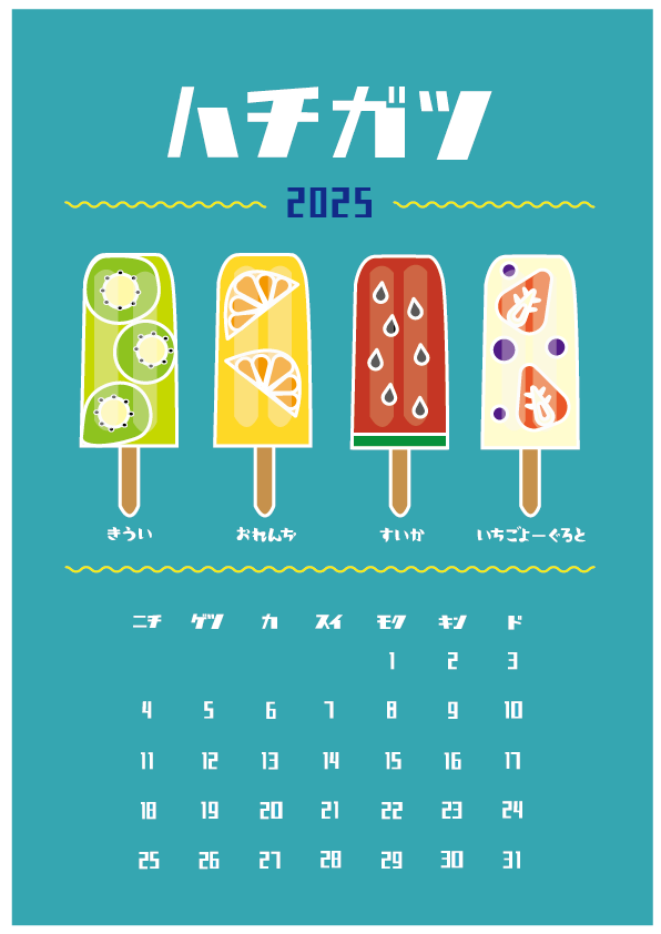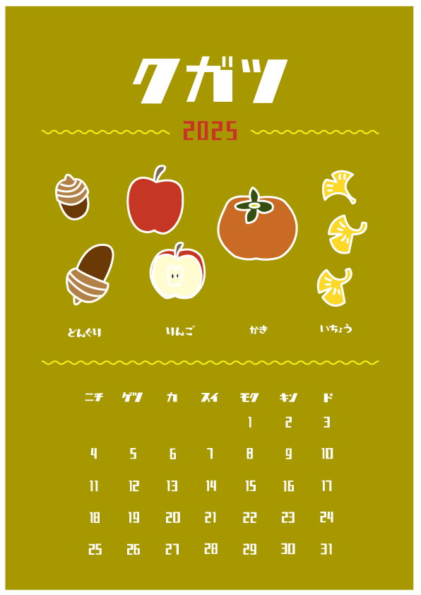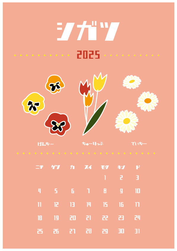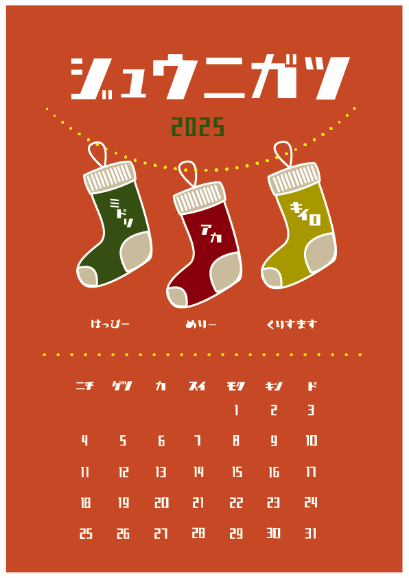 数字を一つひとつ並べたので、カレンダーの日付はすべて同じでインチキです。笑