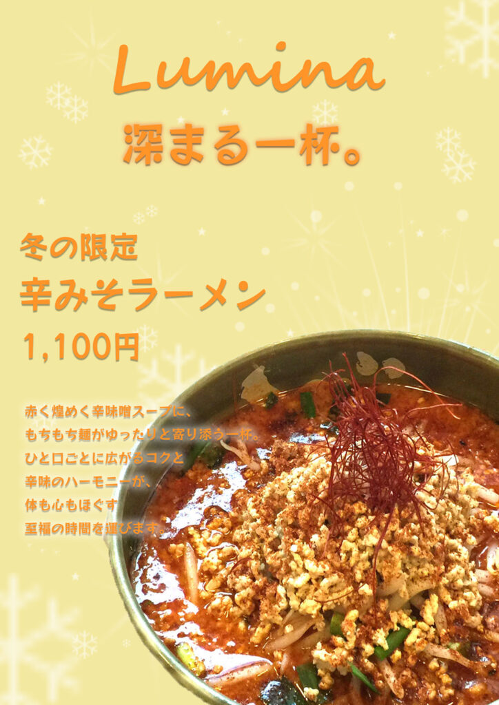 Adobe Photoshopブラシポップ未分類 ラーメン【冬】 Adobe Photoshop 2026.02.272026.02.07 冬のラーメンをテーマとして辛みそラーメンのチラシを作りました。 レイヤー構成 調整レイヤー テキストごとに効果を細かく設定しました 元画像
