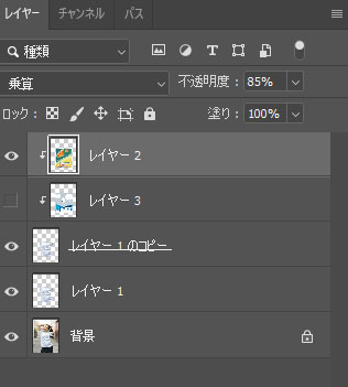 Adobe Photoshop 女性のTシャツデザイン Adobe Photoshop 2026.03.24 レイヤーを使ってTシャツのデザインを作成 感想 レイヤー2と3で違うデザインの物が入っていますので、 レイヤーが上記の通りになっています。 それぞれ作品を別々にしたかったのですが、この時はわからなかったのでそのままにしていました。
