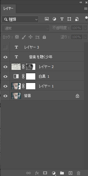 2.レイヤーパネル「調整レイヤー」→白黒