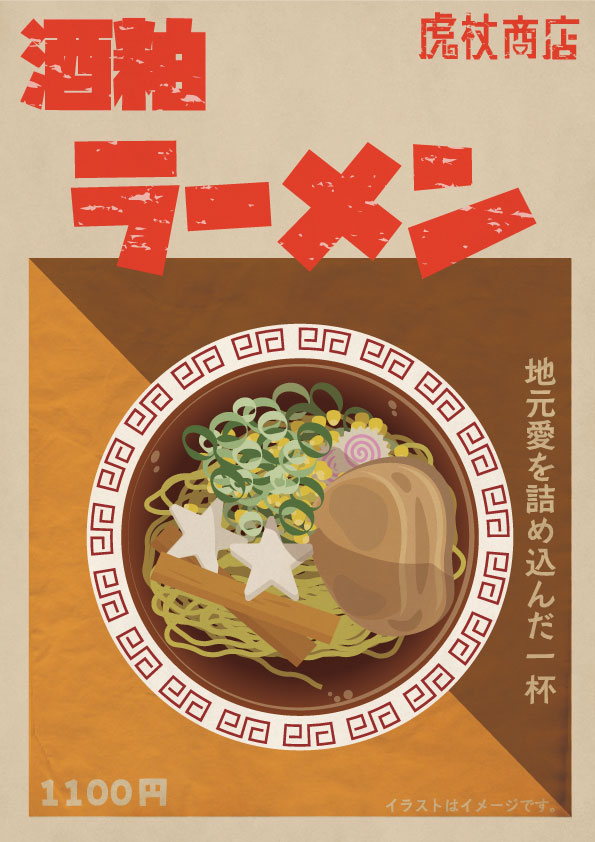 illustrator2回目の課題で制作したポスター。ラーメン屋の壁に貼る新商品宣伝用ポスターを