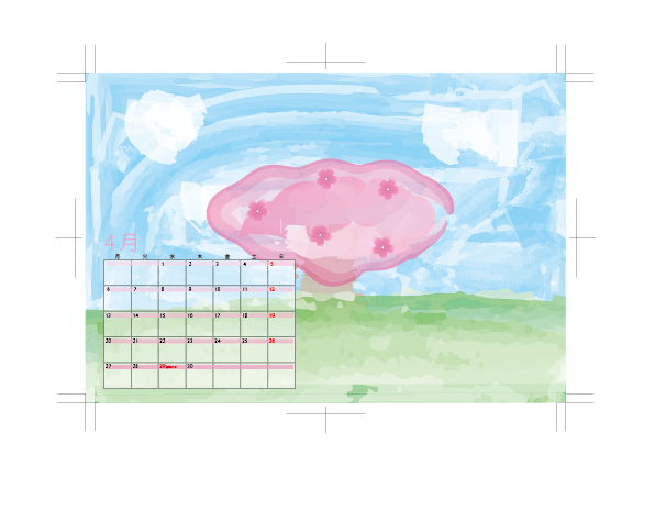 カレンダー制作実習の際に作成した、2026年4月用カレンダーです。