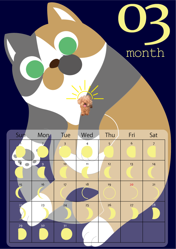 常に猫から獲物として見られている犬が、カレンダーの小さな主役です。