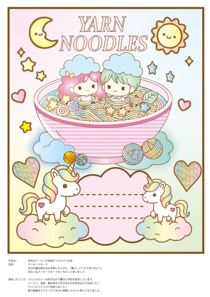 ラーメンの器の模様を1列にすることができたらいいなあと思っています。