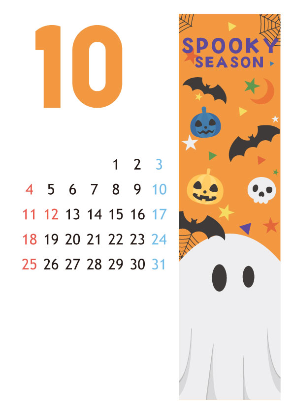 カレンダーはシンプルにしつつ、右のイラストでポップで可愛いデザインにすることで誰でも使えるようなカレンダーにした。